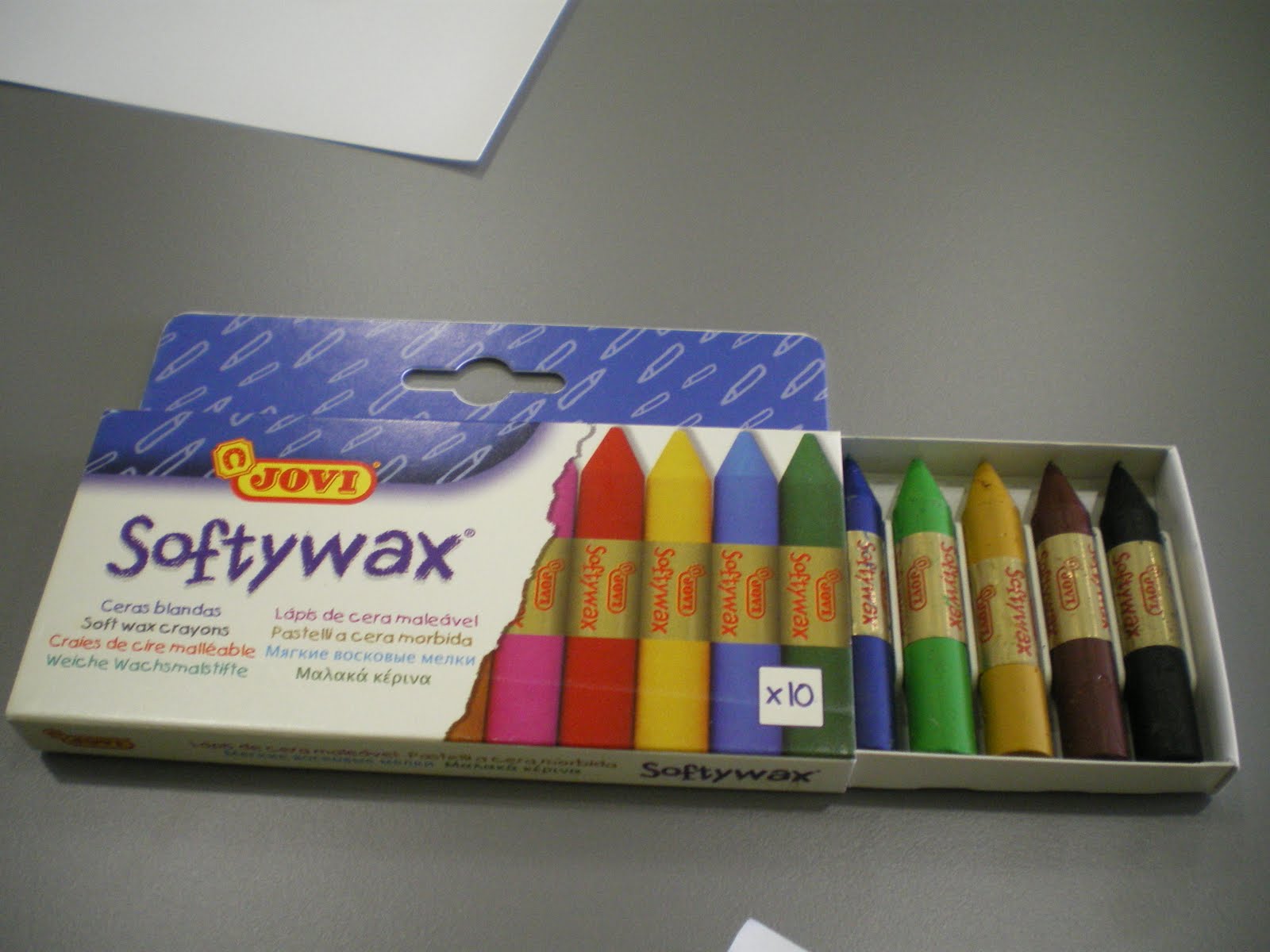 Con ceras blandas SOFTYWAX, ceras redondas de colores vivos y luminosos, da muchas posibilidades, y unas plantillas se puede realizar un precioso trabajo.