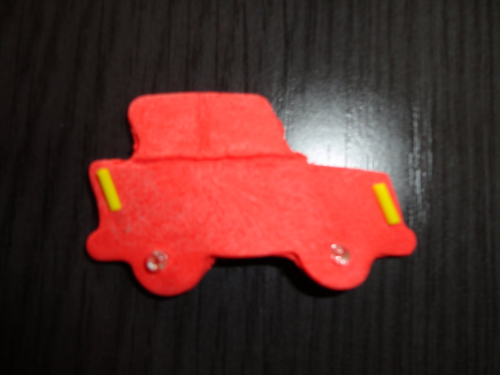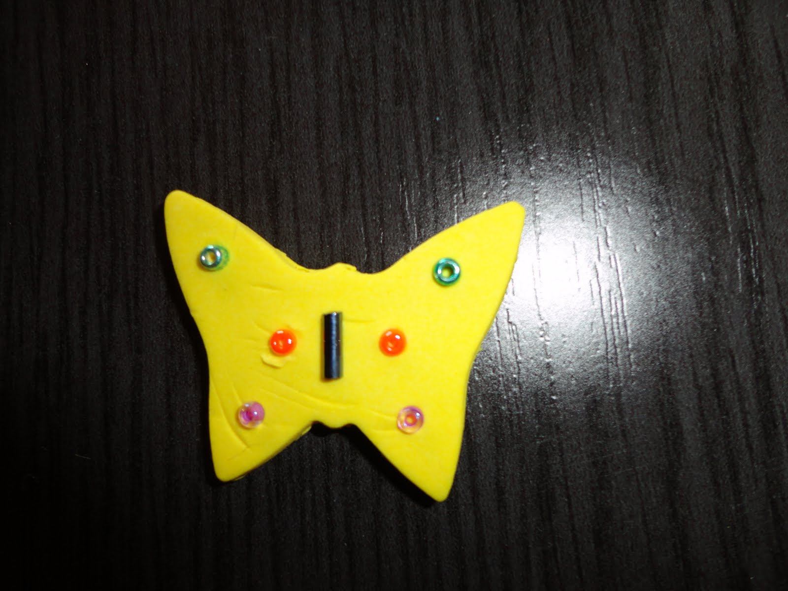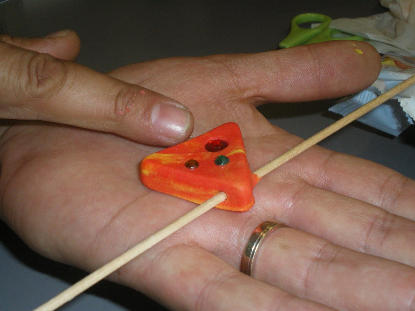 4º Y por último, con un palito se le hace el agujero, donde finalmente le pondremos un cordoncito, y ya está listo.
