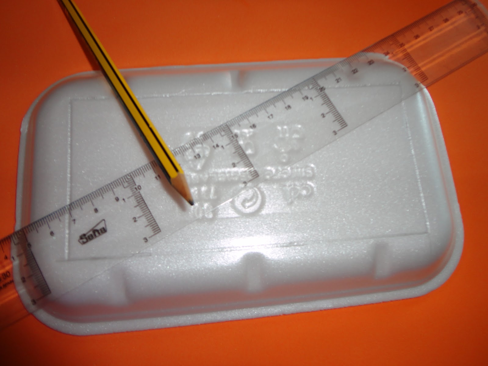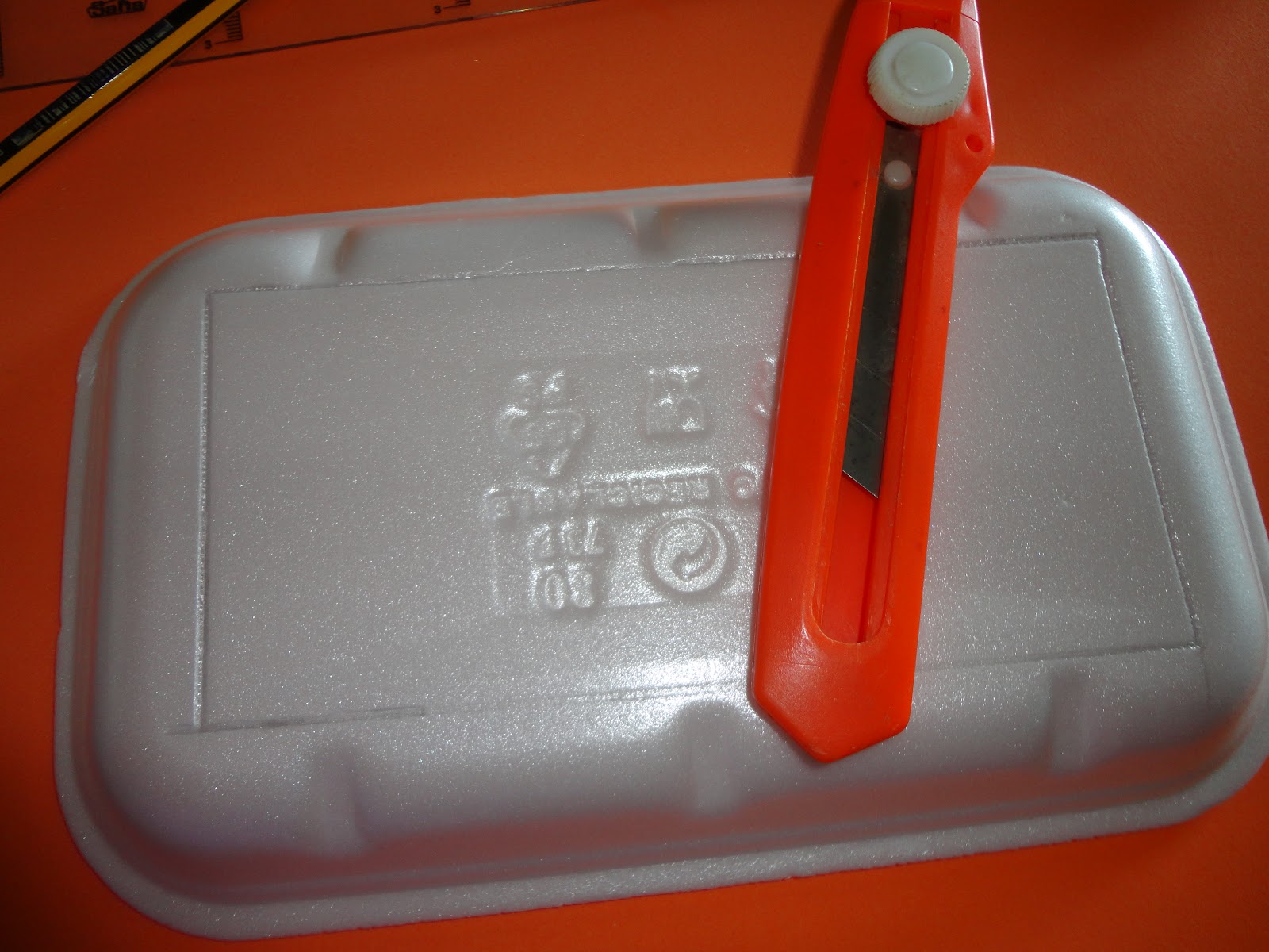 1. Se mide la bandeja, se hace un cuadrado por detrás, para hacer la abertura del cuadro.