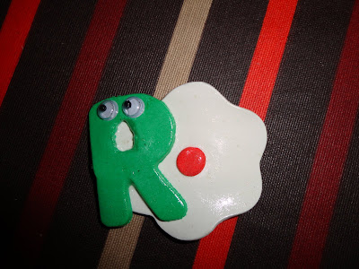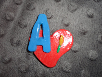 Con PATCOLOR, y moldes de JOVI ,se pueden realizar estos divertidos broches, para poner en camisetas, mochilas, bolsas para la merienda... para diferenciar con la inicial del nombre del niño, en este caso A de Amparo, S de Sergio y R de Rocío.