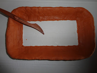 2º Con un molde de plastilina, de forma triangular se corta la pasta.